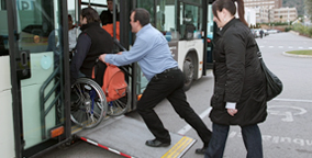 Persones amb necessitats especials treballen l’autonomia en els seus desplaçaments amb empleats voluntaris.